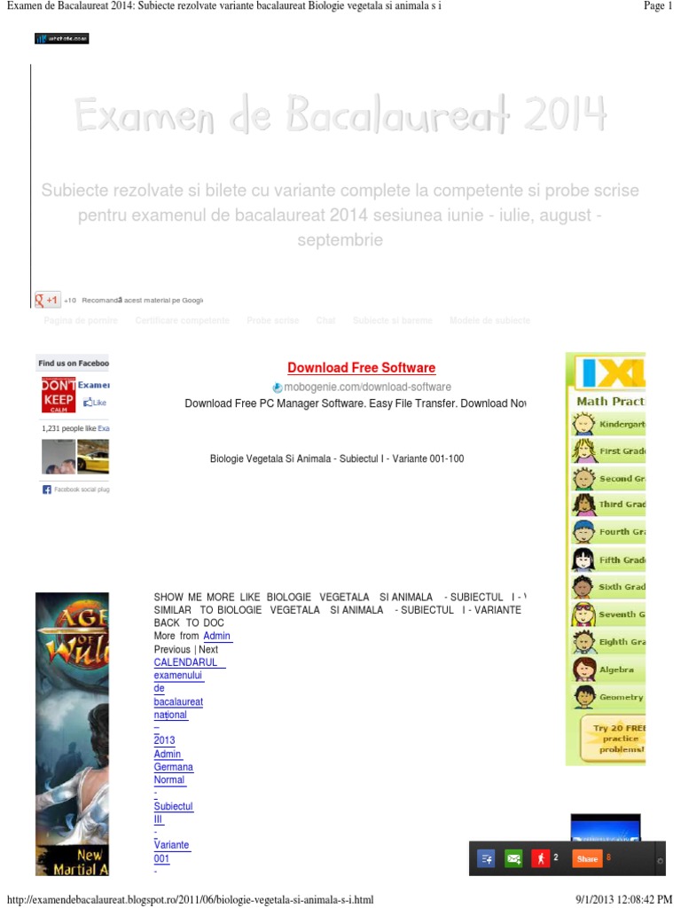 Examen De Bacalaureat 2014 Subiecte Rezolvate Variante Bacalaureat Biologie Vegetala Si Animala S I