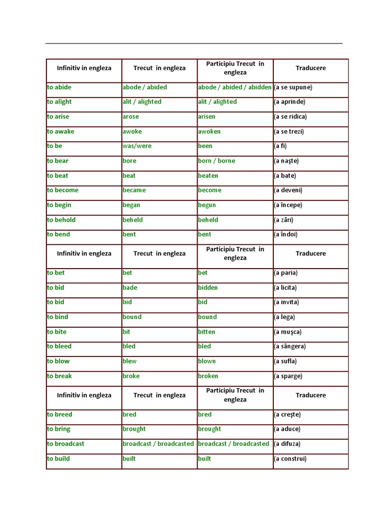 Tabel Cu Verbe Neregulate In Engleza