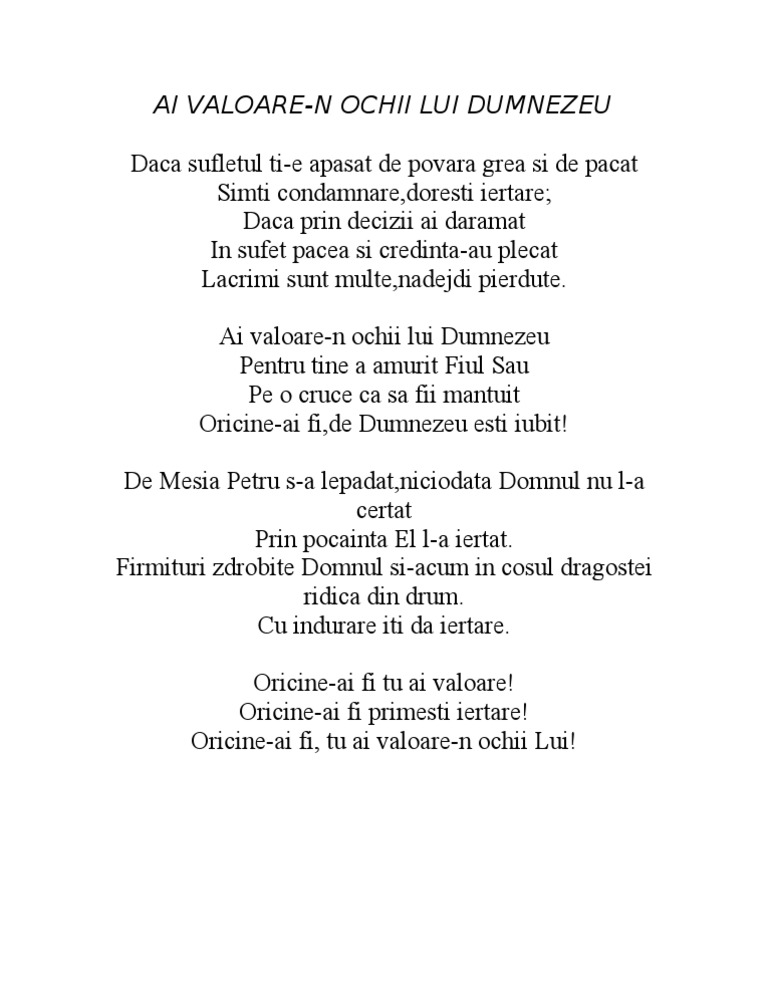 Ai Valoare In Ochii Lui Dumnezeu Youtube