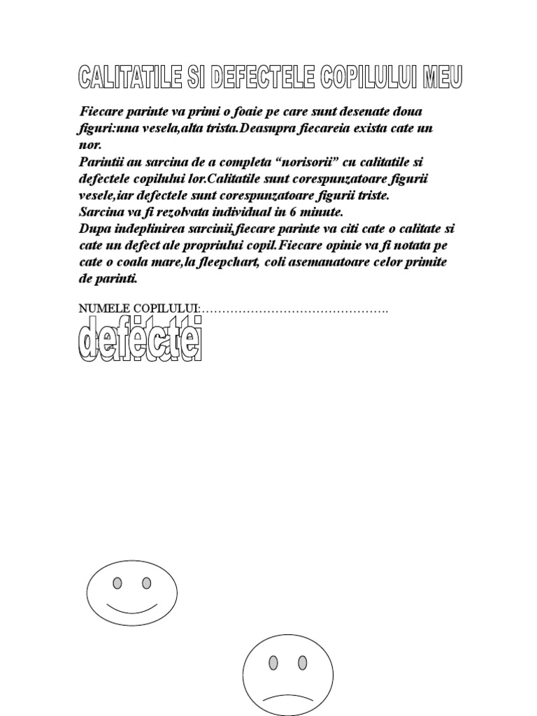 Fise De Lucru Despre Calitatile Si Defectele Elevului
