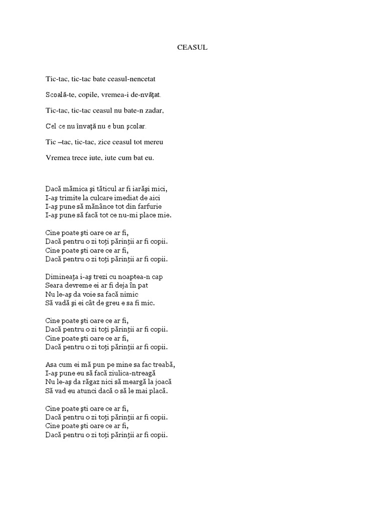 Versuri Cantece Copii