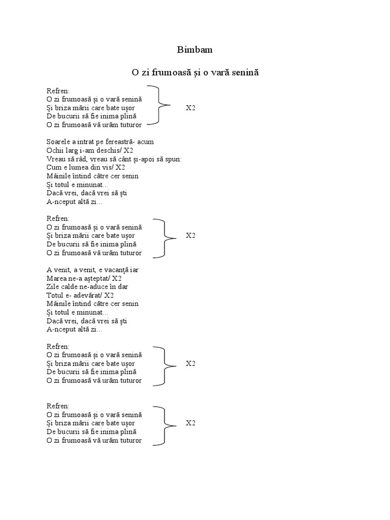 Versuri Bimbam O Zi Frumoasa