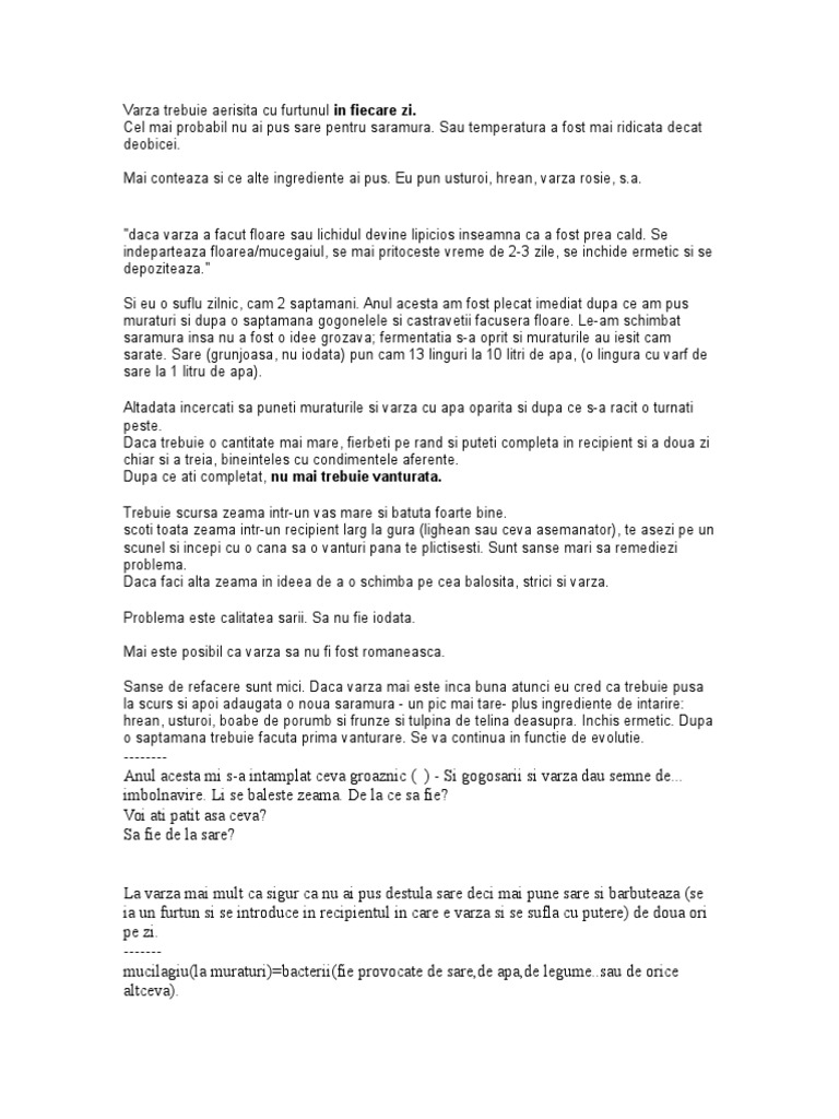 Varza Trebuie Aerisita Cu Furtunul In Fiecare Zi