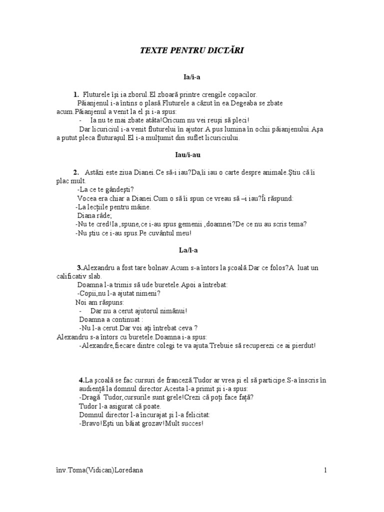 Dictare Texte Scurte Pentru Copii Clasa 1
