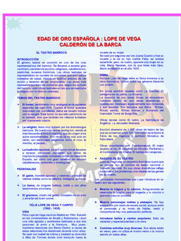 Diferencia Entre El Teatro De Lope De Vega Y Calderon De La Barca By Jorge Gonzalez
