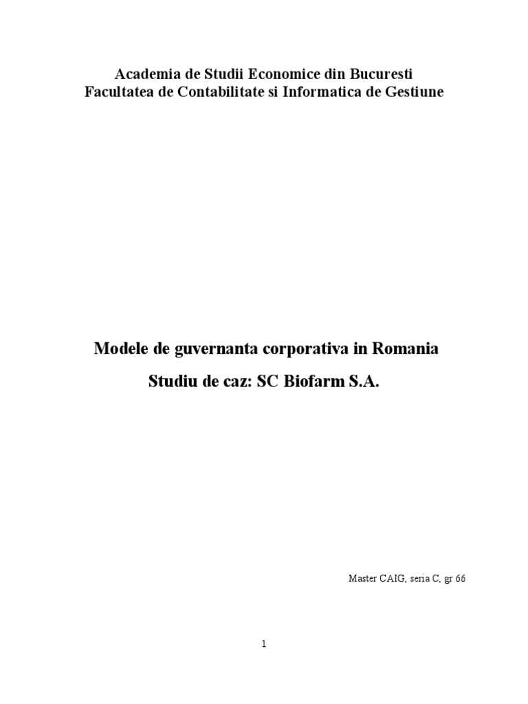 Modele De Guvernanta Corporativa In Romania Studiu De Caz Sc Biofarm Sa