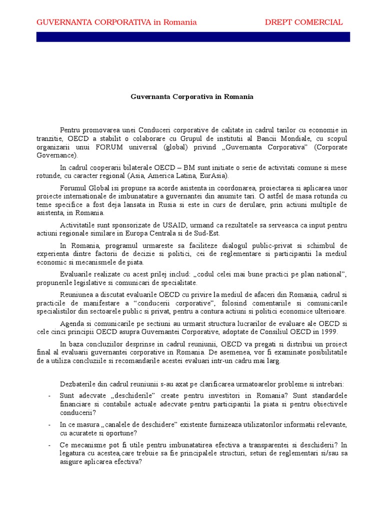 Doc Guvernanta Corporativa In Romania Nope Jokky Academia Edu