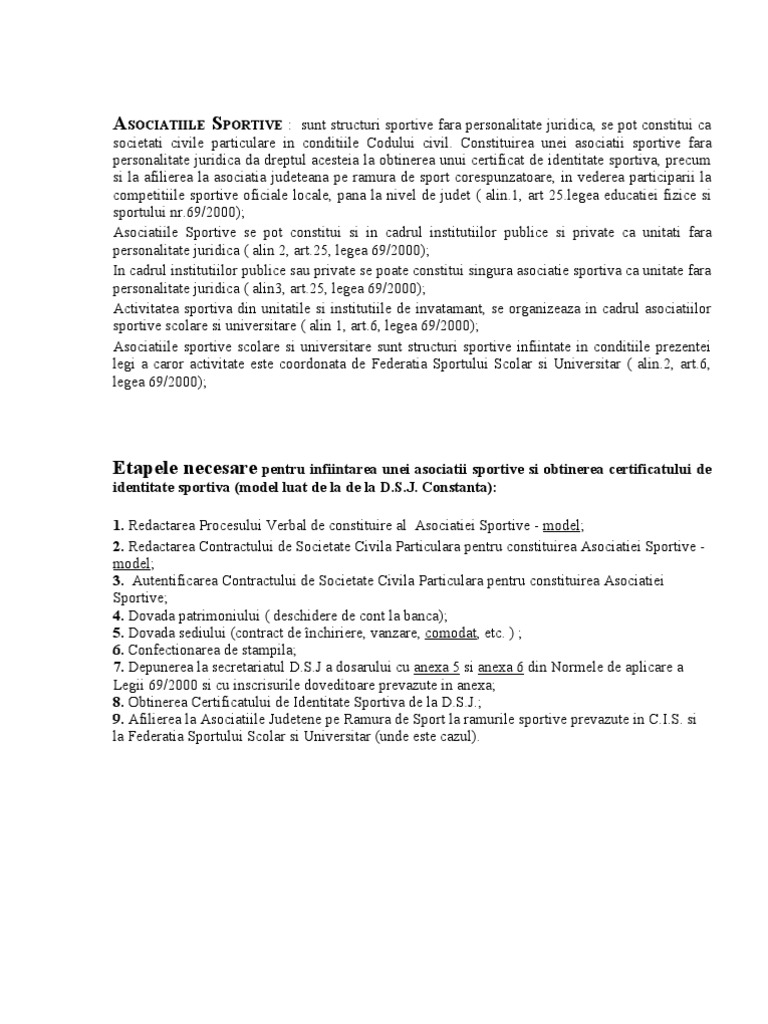 Infiintare Asociatie Sportiva Infiintare Asociatie Sportiva