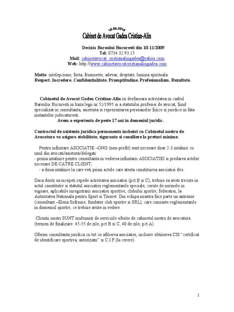 Cabinet De Avocat Gadea Cristian Alin Infiintare Club Sportiv Nonprofit