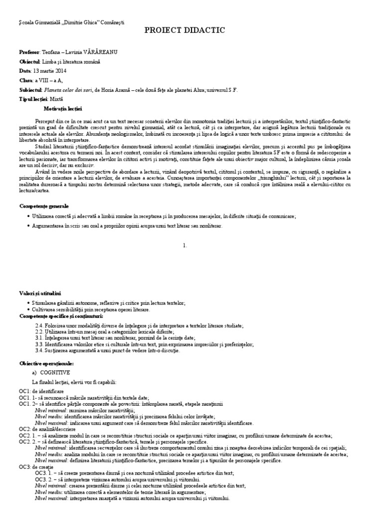 Doc Proiect Didactic Buharu Aura Academia Edu