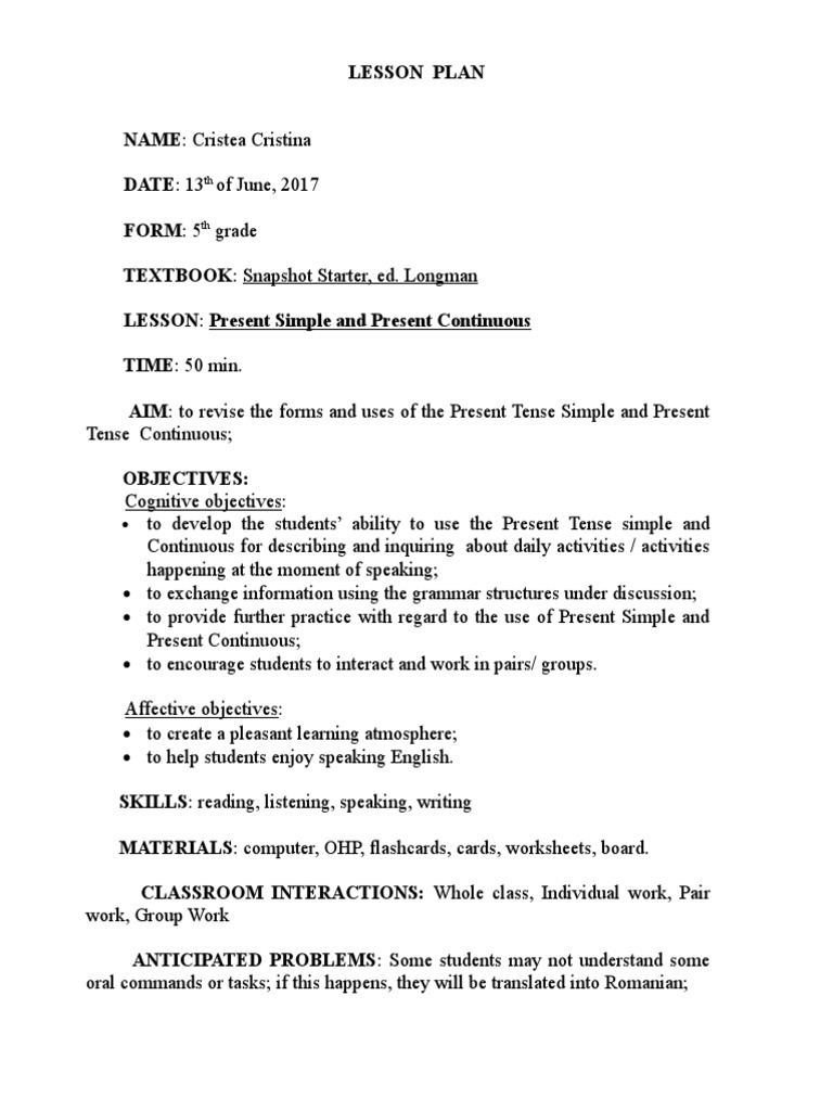Proiect Didactic Cls A Iv A Lesson Plan Linguistics