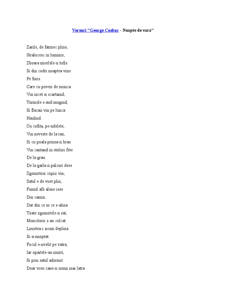 Noapte De Vara De George Cosbuc Printat Docx
