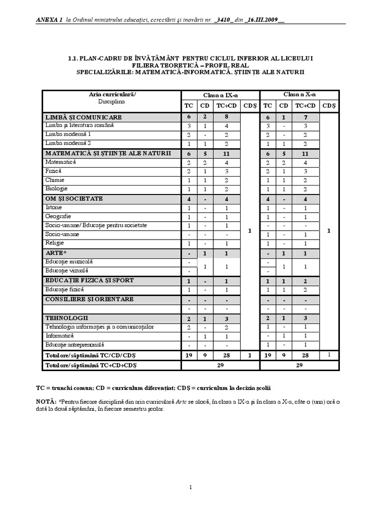Anexa 1 La Ordinul Ministrului Educaţiei Cercetării Si Inovării Nr 3410 Din 16 Iii 2009