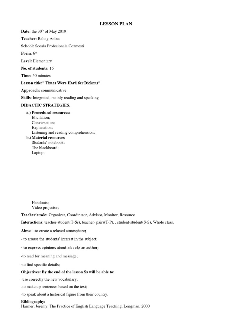 Doc Plan De Lectie Engleza Sandu Oana Georgiana Academia Edu