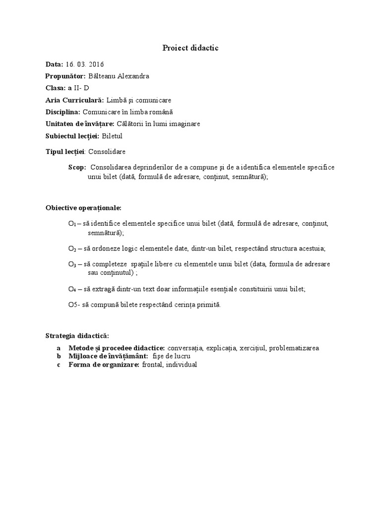 Proiect Didactic Clasa A 2 A Comunicare In Limba Romana