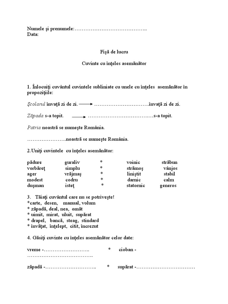 Scrie Cuvinte Cu Acelasi Inteles