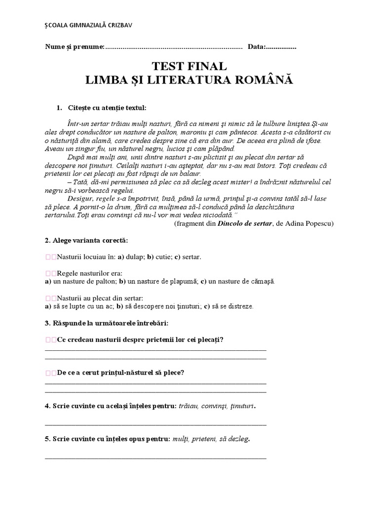 teza romana clasa 5 sem 2 2017