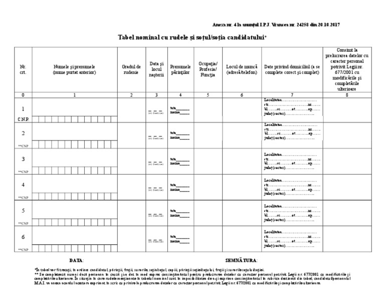 Anexa Nr 5 Model Tabel Nominal Cu Rudele Candidatului