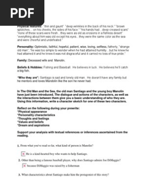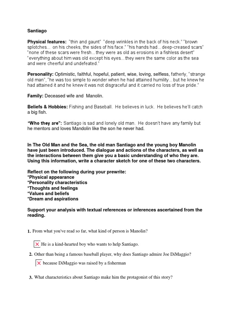 Santiago Character Sketch Fiction Literature