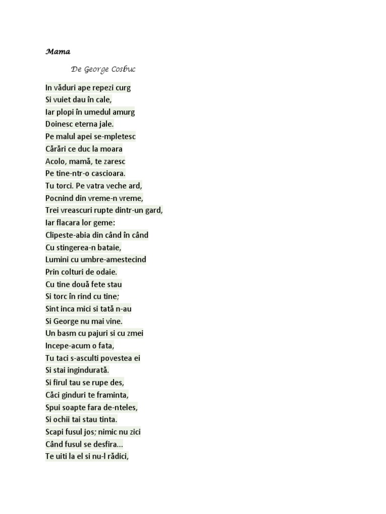 Mama De George Cosbuc Comentariu