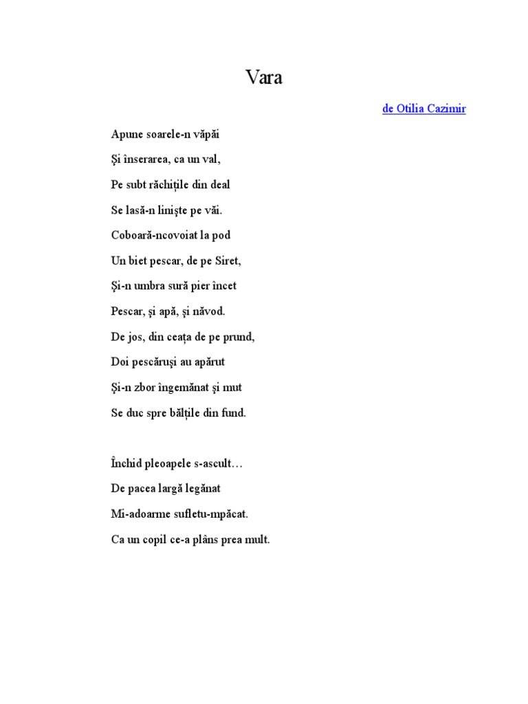 Vara De Otilia Cazimir Poezii Si Versuri
