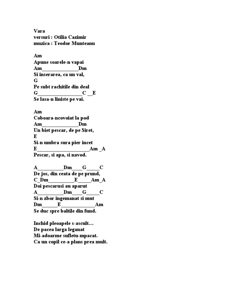 Vara Versuri Otilia Cazimir Muzica