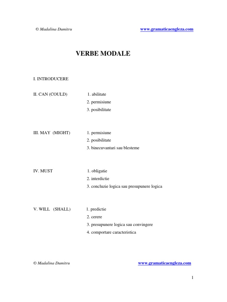 Verbele Modale In Engleza Tabel